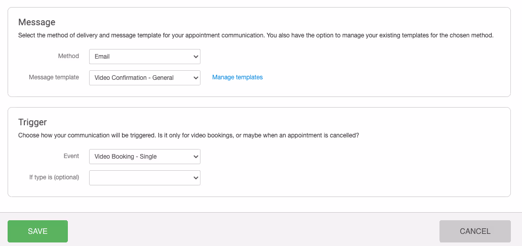 - Go to Main Menu → Settings → Scheduling → Appointment Communication