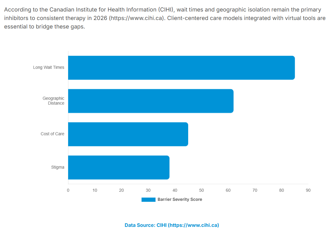 Research shows that the quality of the therapeutic alliance is widely recognised as the strongest predictor of treatment outcome. A stronger therapeutic relationship supports engagement and reduces drop-off when clients feel respected. With median wait times of 41 days for mental health counselling in urban Canadian areas, making the most of each session through strong therapeutic relationships becomes essential for both client outcomes and practice efficiency.